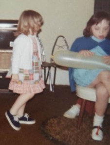 I was a baby when Rhonda came onto my life, so I don’t remember when I met her, but she was my first BFF. Because my mom was a working mother, Rhonda’s mother Hattie was hired to be my babysitter, and I spent nearly every weekday at Hattie’s house for seven years. It was a carefree time, and there are so many memories I have of my childhood with Hattie and Rhonda. Playing in the backyard and being chased by the chickens; plucking berries from the mulberry bushes growing wild along the railroad tracks; sitting in a metal lawn chair by the garden snapping green beans; the howling of the coon dogs out back as they awaited dinner time. The hissing sound coming from the kitchen as dinner was cooking in the pressure cooker; glass canning jars filled with jellies, tomatoes, beans. Eating Hattie’s macaroni and tomatoes. The sizzle and welding sparks I’d see through the open garage door where Hattie’s husband worked on tractor engines. I even learned to tie my shoes at Hattie’s house.